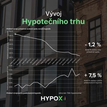 Hypoteční trh zůstává silný, zatímco průměrná úroková sazba nových hypoték klesla pouze o 0,06 % na 4,9 %, počet poskytnutých hypoték stoupl o 7,5 % a s počtem 7 217 šlo o druhý nejaktivnější měsíc roku.