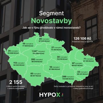 Na poli bytů se opět v říjnu nejvíce obchodovalo s novostavbami. Za průměrnou cenu 126 106 Kč/m2 se jich minulý měsíc v rámci republiky prodalo 2 155, z čehož polovina v hlavním městě. Průměrná cena za m2 dosáhla na úrovni celé republiky nového historického maxima.
