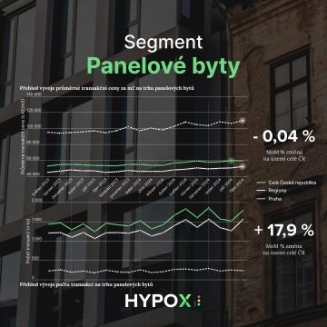 V rámci panelové zástavby se v říjnu prodalo 1 789 bytů, suverénně nejsilnějším trhem byl Ústecký kraj (324 prodejů), který téměř o třetinu překonal druhou Prahu (235). Cenově je segment velmi stabilní, celorepublikový průměr meziměsíčně klesl o 0,04 % na 59 686 Kč/m2. V Praze se cena za m2 panelového bytu drží nad hranicí 100 000 korun.