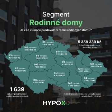 Druhým nejaktivnějším segmentem byly rodinné domy, kterých se v únoru prodalo 1 639. Nejvíce se obchodovalo ve Středočeském (309 transakcí) a Jihomoravském (246 transakcí) kraji.