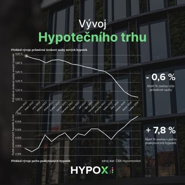 Hypoteční trh dál intenzivně sílí, počet poskytnutých hypoték meziměsíčně stoupl o téměř 10 %, úroková sazba klesla na 5,07 %.