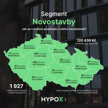 Cenová hladina v regionech v květnu mírně klesla na úroveň 96 268 Kč/m2. Nejdráže se novostavby prodávaly v Praze, naopak nejlevněji v severozápadních Čechách, kde je trh nových bytů také dlouhodobě nejméně aktivní.