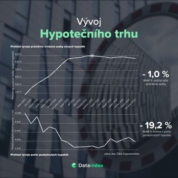 Počet poskytnutých hypoték se v čevenci poklesl o necelých 20 %. Průměrná úroková sazba u nových hypoték nadále pomalu klesá.
