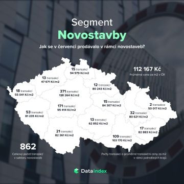 Druhým nejméně aktivním sektorem byly v červenci byty v novostavbách, které zaznamenaly 862 transakcí. Nejvíce prodejů evidovalo hlavní město Praha, po něm pak s poměrně značným odstupem Středočeský a Jihomoravský kraj. V hlavním městě proběhlo v sektoru novostaveb 371 transakcí, v Jihomoravském kraji 171 transakcí a ve Středočeském kraji 109 transakcí.