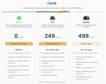 Základní funkce jsou v HYPOXu zcela zdarma. Stačí se registrovat. Pokud chcete využít pokročilé funkce, vyberte si tarif PRO nebo INVEST.