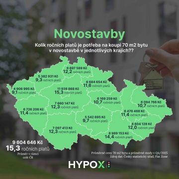 Otázka toho, jestli je vlastní bydlení v České republice stále dosažitelným cílem, nebo se stává výsadou úzké skupiny vysoko příjmových domácností, nebyla snad nikdy aktuálnější. V HYPOXu jsme se rozhodli podívat na tvrdá data za čtvrté čtvrtletí roku 2025. Porovnali jsme reálné transakční ceny nemovitostí s průměrnými mzdami napříč všemi kraji ČR. Výsledek? Česko se definitivně rozděluje na oblasti, kde na byt vyděláváte necelých pět let, a na regiony, kde vám na něj nemusí stačit ani patnáct let čisté práce.