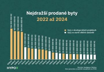 Pomyslnému žebříčku nejdražších nemovitostí dlouhodobě vévodí Praha, není tak žádné překvapení, že všech 25 nejdražších bytů prodaných v posledních dvou letech najdete právě tam.