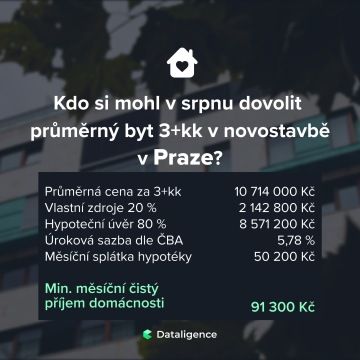 Koupě třípokojového bytu o výměře 75m2 v sektoru novostaveb vyšla v srpnu v hlavním městě na 10 714 000 korun. Na takový byt je potřeba minimálně 2,1 milionu korun z vlastních zdrojů.