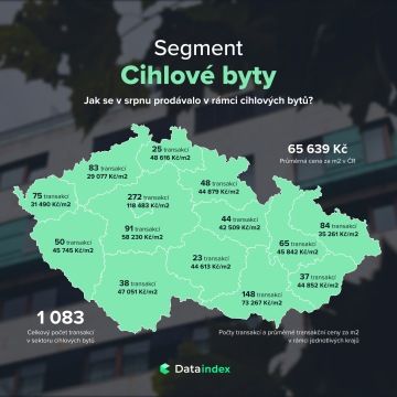 Nejméně aktivním byl sektor cihlových bytů, který zaznamenal v srpnu 1 083 transakcí. Nejvíce prodejů evidovalo hlavní město Praha, po něm pak Jihomoravský a Středočeský kraj. V rámci Prahy proběhlo v sektoru cihlových bytů 272 transakcí, v Jihomoravském kraji 148 transakcí a ve Středočeském kraji 91 transakcí.